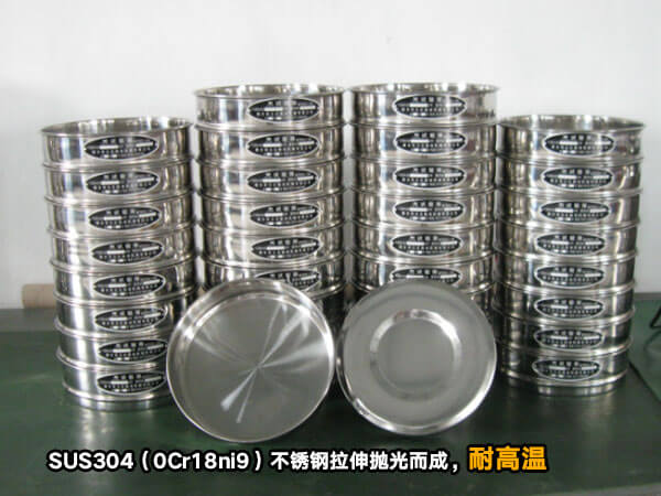 篩框采用SUS304(0Cr18ni9)不銹鋼拉伸拋光而成,壁厚0.6毫米,表面光可鑒人,整體成型堅(jiān)固耐用,沒有磁性,篩網(wǎng)與篩框通過錫焊固定,不會松弛。能耐300度以下高溫。