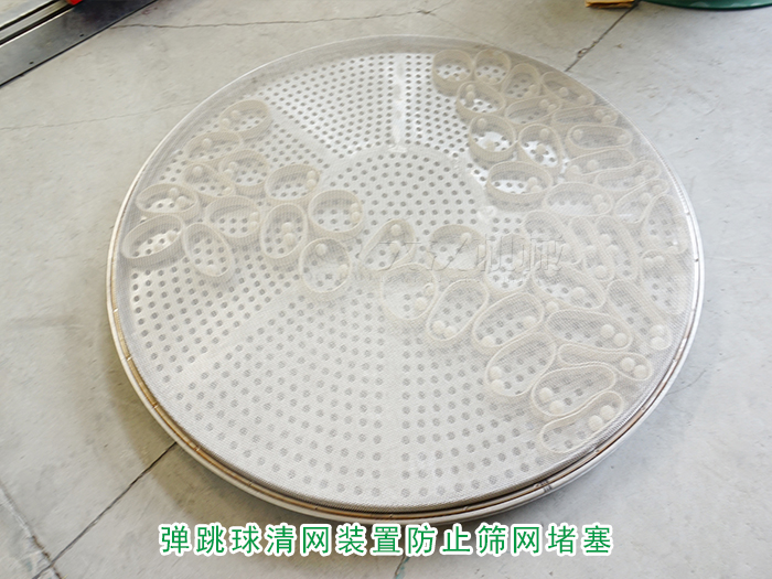 普通圓形篩分設備的清網裝置是彈跳球清網裝置,在物料篩分運行過程中不斷地拍擊篩網,防止篩網遇到顆粒狀物料堵塞