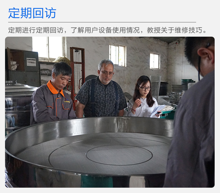大漢廠家有專(zhuān)也人員定期進(jìn)行定期回訪,了解用戶(hù)設(shè)備使用情況,教授關(guān)于超聲波振動(dòng)篩維修技巧。