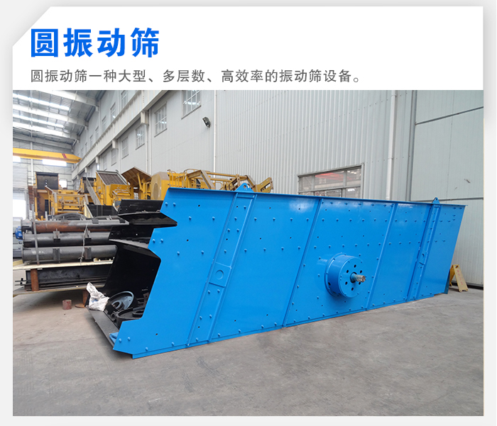 圓振動篩是一種做大型、多層數、高效新型振動篩。圓振動篩采用筒體式偏心軸激振器及偏塊調節振幅,物料篩淌線長,篩分規格多,具有結構可靠、激振力強、篩分效率高、振動噪音小、堅固耐用、維修方便、使用安全等特點,該振動篩廣泛應用于礦山、建材、交通、能源、化工等行業的產品分級。