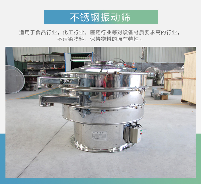 不銹鋼振動(dòng)篩多適用于食品行業(yè),化工行業(yè),醫(yī)藥行業(yè)等對(duì)設(shè)備材質(zhì)要求高的行業(yè),不污染物料,保持物料的原有特性。不銹鋼振動(dòng)篩里外拋光,干凈,衛(wèi)生,無(wú)死角。不銹鋼振動(dòng)篩整機(jī)采用304材質(zhì),因此食品用振動(dòng)篩也叫食品不銹鋼振動(dòng)篩。