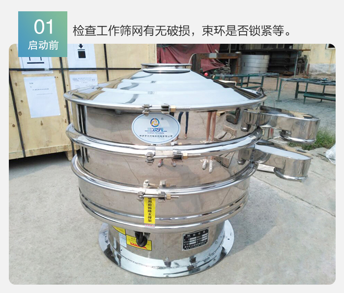 1、啟動(dòng)前:(1)檢查工作篩網(wǎng)有無(wú)破損,如有破損,需立即更換完好的篩網(wǎng);